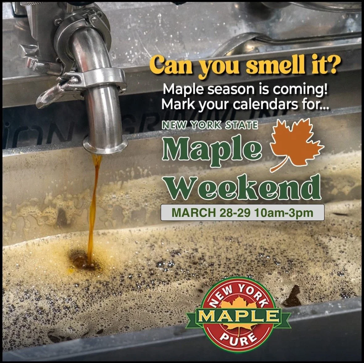 NYS Maple weekend 2026- March 28-29 10am - 3 pm
